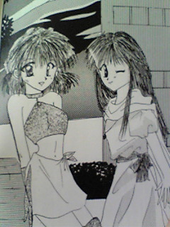| 2003画、私。 | 背後友人より頂き物。 | 1995画、私。左がアサギ。一番最初に異界に飛ばされて買ってもらった服。 | 背後が当時尊敬していたおねーさんに描いて頂いたアサギ。 なんかエロイ。(笑) |